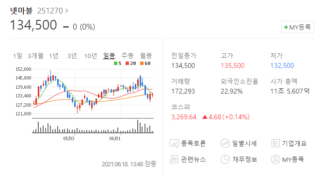 2021.06.14 - [주식정보] - 넷마블 주가 전망 :: 목표주가는?