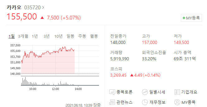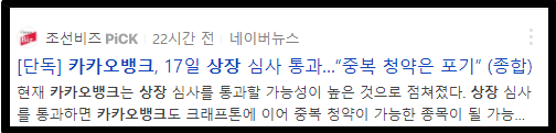 또한 카카오뱅크는 17일에 상장심사통과가 완료되었습니다. 이렇게 되면서 카카오의 주가는 계속 신고가를 경신해나가고 있는데요.