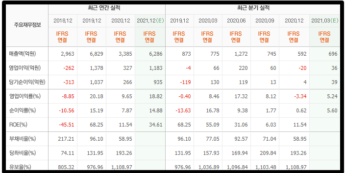 보시면 2018년도의 실적을 과감하게 다음년도에 바로 턴어라운드 시켰습니다. 그리고 아마 2021년에는 다시 2019년도 정도의 실적을 회복 할 수 있을것으로 보여집니다.