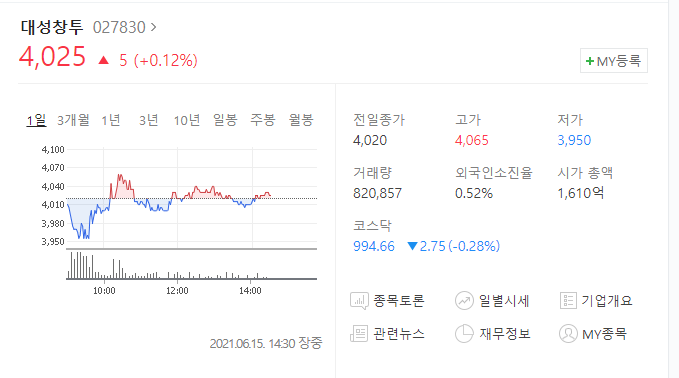 세번째 종목은 대성창투입니다. 대성창투 역시 크래프톤 지분을 가지고 있기는 하지만 정확한 지분율은 확인되지 않고 있습니다. 아마도 이들이 투자한 사모펀드의 지분을 일부 가지고 있는 정도로 보여집니다.