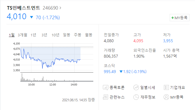 마지막 크래프톤 관련주는 바로 TS인베스트먼트 입니다. 재무도 상당히 깨끗하긴 한데 차트가 많이 망가져있는게 아쉽습니다. 계속 횡보중인 종목이긴한데 어떻게 보면 이런게 또 슈팅이 한번씩 나오긴 합니다.