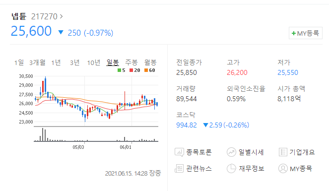 넵튠은 카카오게임즈의 뒤를 이어 1.08%의 크래프톤 지분을 가지고 있습니다. 아마 카카오게임즈에 비해 꽤 생소한 종목일테지만 넵튠도 상당히 유명한 모바일게임회사 입니다. 다만 최근의 흐름이 그다지 좋지가 못해서.. 애매하네요.