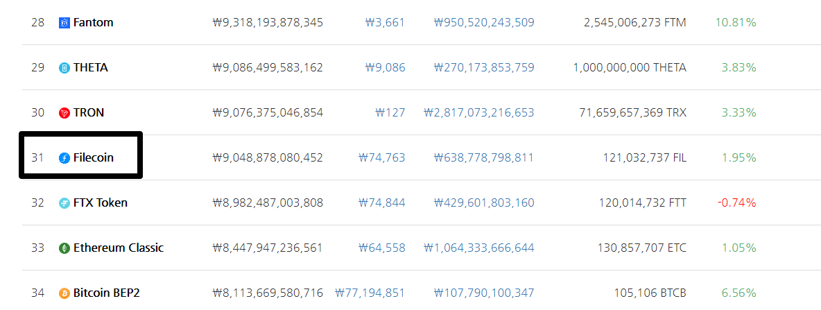 파일코인은 현재 시총 31위에 위치하고 있는 코인입니다. 또한 WEB 3.0 으로 묶여있는 테마 코인이기도 하죠. 아마 파일코인을 검색하고 계신 분이라면 NFT 와 LAYER 1,2 코인, 디파이 코인 종류는 다 아실거라고 생각합니다. 혹시라도 모르고 계신다면 무조건 공부!!