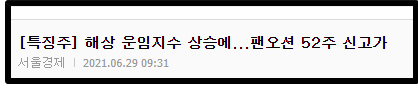 아마 해운회사의 실적이 잘 나올것으로 예상되는 이유가 바로 해상 운임지수 상승에 있는데요.