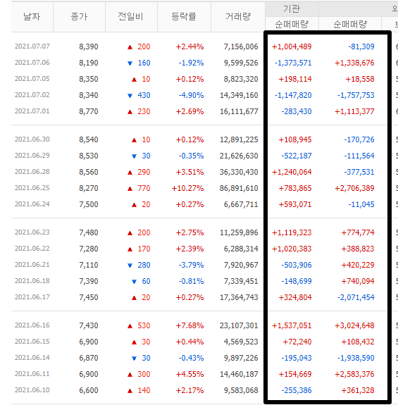 전체적으로 기관과 외국인은 팬오션을 꽤 강하게 매수하고 있긴 합니다. 아마 HMM이 오른거에 비해 팬오션을 꽤 덜올랐다고 생각을 하는 것 같습니다. 실제로 그러기도 했구요.