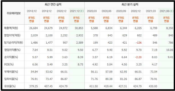 실적은 2021년에 상당히 좋은 수치가 나올 것으로 예상되는데요. 낮은 ROE 는 아쉽지만 당기순이익과 매출 모두 엄청난 수준으로 올라올 것으로 보여집니다. 한국 뿐만 아니라 전세계 해운회사 실적은 뭐 2021년 부터 워낙 좋을것으로 예상됩니다.