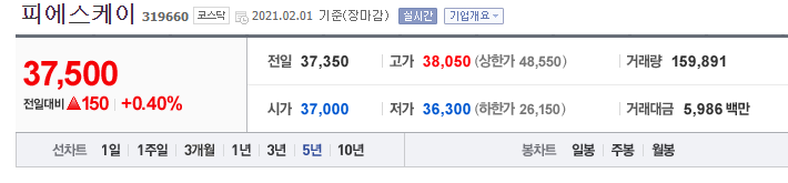 피에스케이는 2019년 5월에 상장 된 주식입니다. 피에스케이홀딩스에서 반도체 공정 장비 부문을 인적 분할하여 설립된 회사입니다. 차트데이터가 상당히 부족한 주식이라는 뜻이 되겠죠?