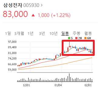 아마 고점에서 물리신 분들은 " 삼성전자니까 괜찮아.. " 라고 생각하면서도 기분은 상당히 안좋으실 겁니다. 계좌에 파란불이 찍혀있는건 언제나 짜증나죠.