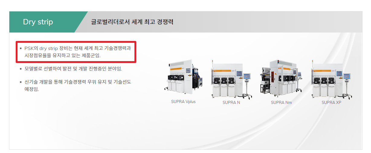 피에스케이는 DRY STRIP 분야에서 세계적인 기술력을 보유한 기업입니다. 세계 1위 DRY STRIP 기업이죠.