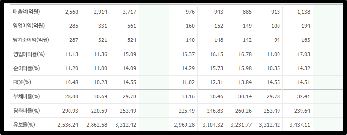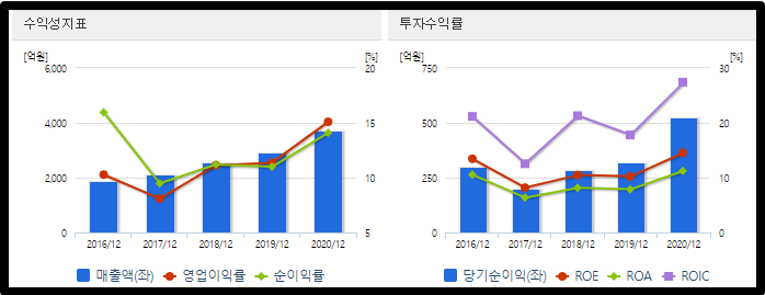 수익성지표과 투자수익률도 매우 좋아보입니다. 특히 수익성지표는 계속 우상향을 이쁘게 그려주고 있네요. 코로나 때문에 주류 판매량이 오히려 더 늘어나기 때문인지.. 아니면 화학섹터의 전반적인 실적개선인지는 모르지만 확실히 실적측면에서나 투자수익률이나 괜찮다고 보여집니다.