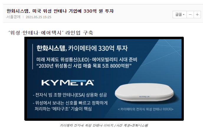 특히 한화시스템은 상당히 공격적인 투자를 하면서 위성, 항공우주 쪽에 힘을 주고 있죠. 저는 이게 상당히 좋은 투자라고 보여집니다.