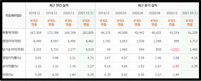 한국의 대표 건설사 답게 실적이나 재무는 매우 좋습니다. 특히 2020년에는 다소 부진했던 실적을 2021년부터는 완벽하게 턴어라운드 해줄것으로 전망되는데요. 건설주는 제가 항상 말했지만 2021 - 22년 메인 수혜주가 될거라고 했었죠. 그 기대에 보답하듯 2021년 예상 실적이 상당하네요.