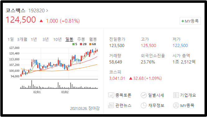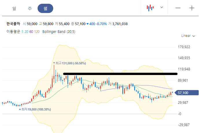 요것도 한한령 선포 이전의 주가를 아직 회복하지 못했습니다. 보통 화장품 대장주 하면 가장 많이 손꼽히는게 한국콜마, 아모레, 코스맥스 인데요. 그 중에서 아모레는 이미 회복을 했고 나머지 두 종목은 아직 회복을 하지 못한 상태입니다. 그렇다는 뜻은.. 나머지 두 종목도 결국 회복을 다시 할 수 있다는 뜻이겠죠? ( 개인적 추측입니다, )