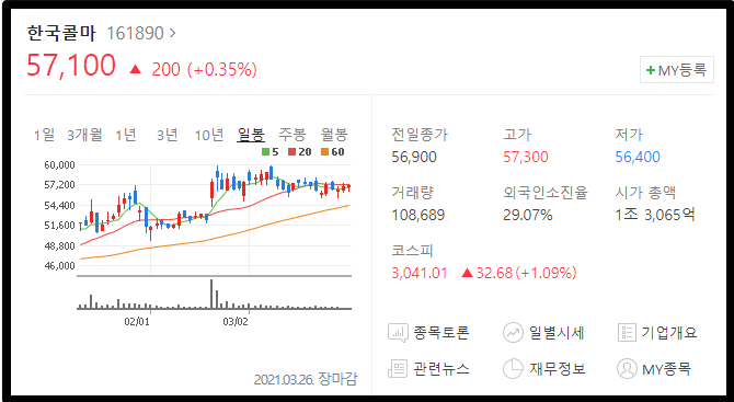 세번째 종목은 한국콜마 입니다. 이 기업은 화장품을 판매하는 브랜드가 있는 기업이 아니고, 전반적인 화장품 재료를 개발 및 제조 하는 기업입니다. 하지만 화장품 대장주로 항상 들어가 있으며 실적도 잘나오는 좋은 기업입니다.