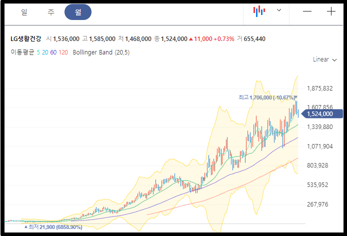 두번째 종목은 LG생활건강 입니다. 후,숨,오휘 같은 브랜드를 가지고 있는 기업이죠. 화장품 밖에도 생활용품, 음료 등을 판매하고 있으며 상당히 경쟁력이 있는 브랜드들을 다수 소유하고 있습니다.