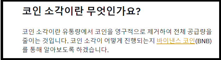 또한 BNB코인은 지속적인 소각을 진행하고 있습니다. 코인 소각이라는건 한마디로 코인의 일정량이 사라지면서 그 코인의 가치가 상승됨을 의미합니다. BNB코인은 현재 15번의 소각을 이미 진행했으며 앞으로도 계속 소각을 할 예정이라고 하니 BNB코인의 가치 상승여지는 매우 크다고 볼 수 있겠죠.
