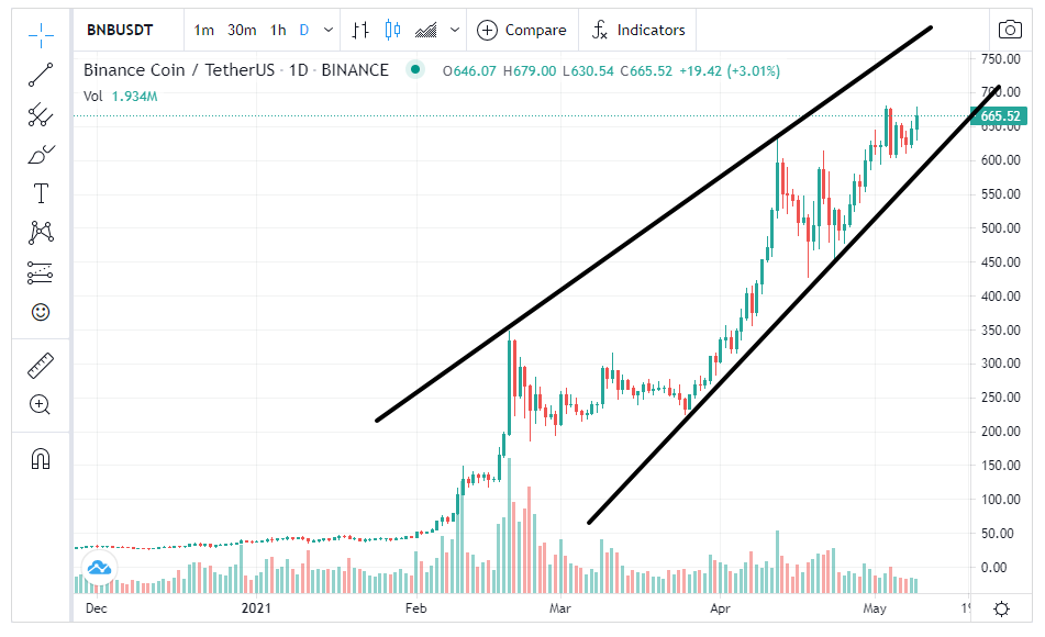 이렇다 보니 이미 2021년 2월부터 급격하게 올라서 현재는 약 30불이었던 코인이 현재 665불에 거래되고 있습니다. 20배 넘게 올랐네요.