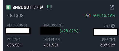 저는 솔직히 바이낸스 코인은 무조건 더 갈 것 같아서 선물거래 격리 30배 롱으로 들어가 있는 상태입니다. 떨어지면 물타고 떨어지면 물타서 꽤 길게 가져갈 예정인데.. 이미 30% 가까운 수익률에서 안떨어지더라구요ㅠ 아쉽습니다.