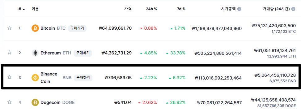 거기에 현재 코인 시총 3위에 해당할 정도로 이미 대형시총코인으로 치고 올라왔는데요. 저런 도지 같은 잡코인 보다는 BNB 코인이 훨씬 더 안전하다고 볼 수 있겠습니다.