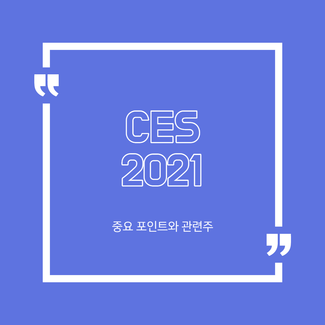 안녕하세요. 오늘은 코로나로 인해 전 일정이 온라인으로 치뤄지는 CES 2021와 관련된 키워드들과 관련주들에 대해 한번 알아보겠습니다. 간단하게 CES에 대해서 설명하고 바로 키워드들을 알아보겠습니다.