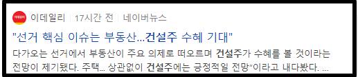 근데 이건 제가 어느정도 예상해본 추론이고 솔직히 주가는 어떻게 될지 아무도 모르죠. 다만 2021년 동안은 건설주가 어느정도 좋을 거라고 생각합니다. 어차피 2021년 서울시장선거, 2022년 대선 등 연이어 있는 선거로 인한 수혜는 충분히 많이 받을 것 같구요. 근데 매수 타이밍을 정말 잘 잡아야 수익이 좋을 수 있는..