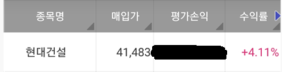 저는 약간 이런 느낌의 상승으로 보고 있습니다. 솔직히 저는 건설주 진짜 좋게 보고 있어서 현대건설 1차 매수로 들어가서 수익중이며, 차기 건설주를 탐색하고 있는 중입니다.