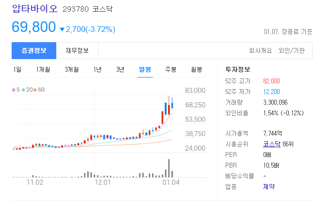 세번째는 압타바이오입니다. 항암치료제 및 당뇨합병증 치료제를 개발하는 기업입니다. APX-115라는 당뇨합병증 치료제는 현재 유럽에서 임상 2상을 진행중이며, APX-311( 비알콜성 지방간염 치료제 ) 는 올해 2월 임상에 진입 예정입니다.