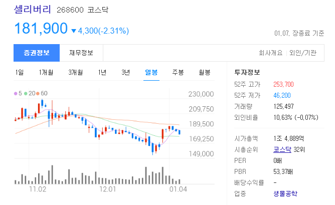 다섯번째 종목은 셀리버리 입니다. 셀리버리의 최근 주가는 조정중에 있습니다. 코로나19 치료제를 개발 중이며 항염증 면역치료제 'ICP-NI'의 공동개발 및 투자유치를 추진할 예정입니다. 컨퍼런스 관련주로 이미 상승을 한번 했던 전력이 있습니다. 코로나19 감염 모델을 대상으로 80% 생존율 향상 효능을 이미 확인 받은 상태입니다.