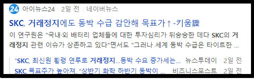 하여튼 이 말은 곧 LG화학에 동박을 납품하고 있는 SKC 의 주가 역시 빠졌어야 한다는 소리입니다. 근데 SKC는 거래정지라서 주가가 오히려 방어되고 있는 아이러니한 상황..ㅋㅋㅋㅋ